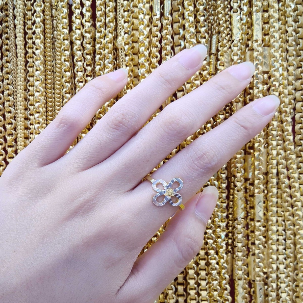 แหวนทองน้ำหนัก 1 สลึง แฟนซีลายดอกลักกี้ 2 สี