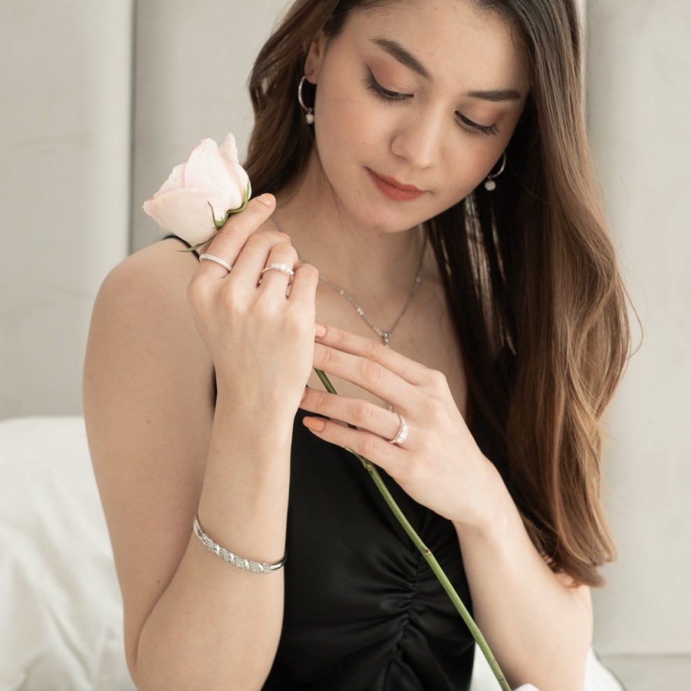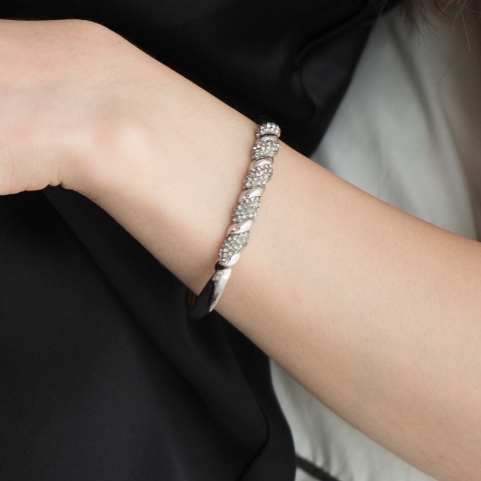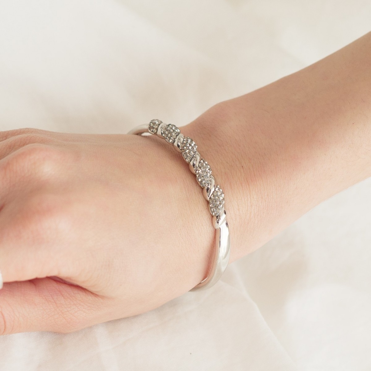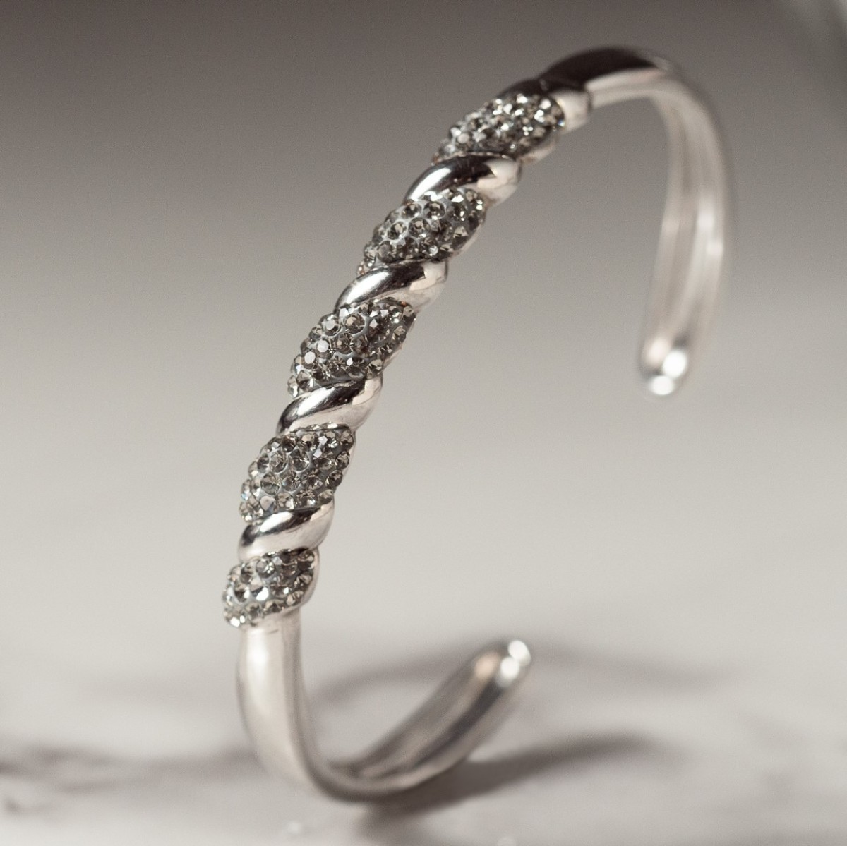 กำไลข้อมือเงิน 925 กำไลตัวC เกลียวฝังคริสตัลสีเทา(เส้นผ่าศูนย์กลาง 6.3Cm.)