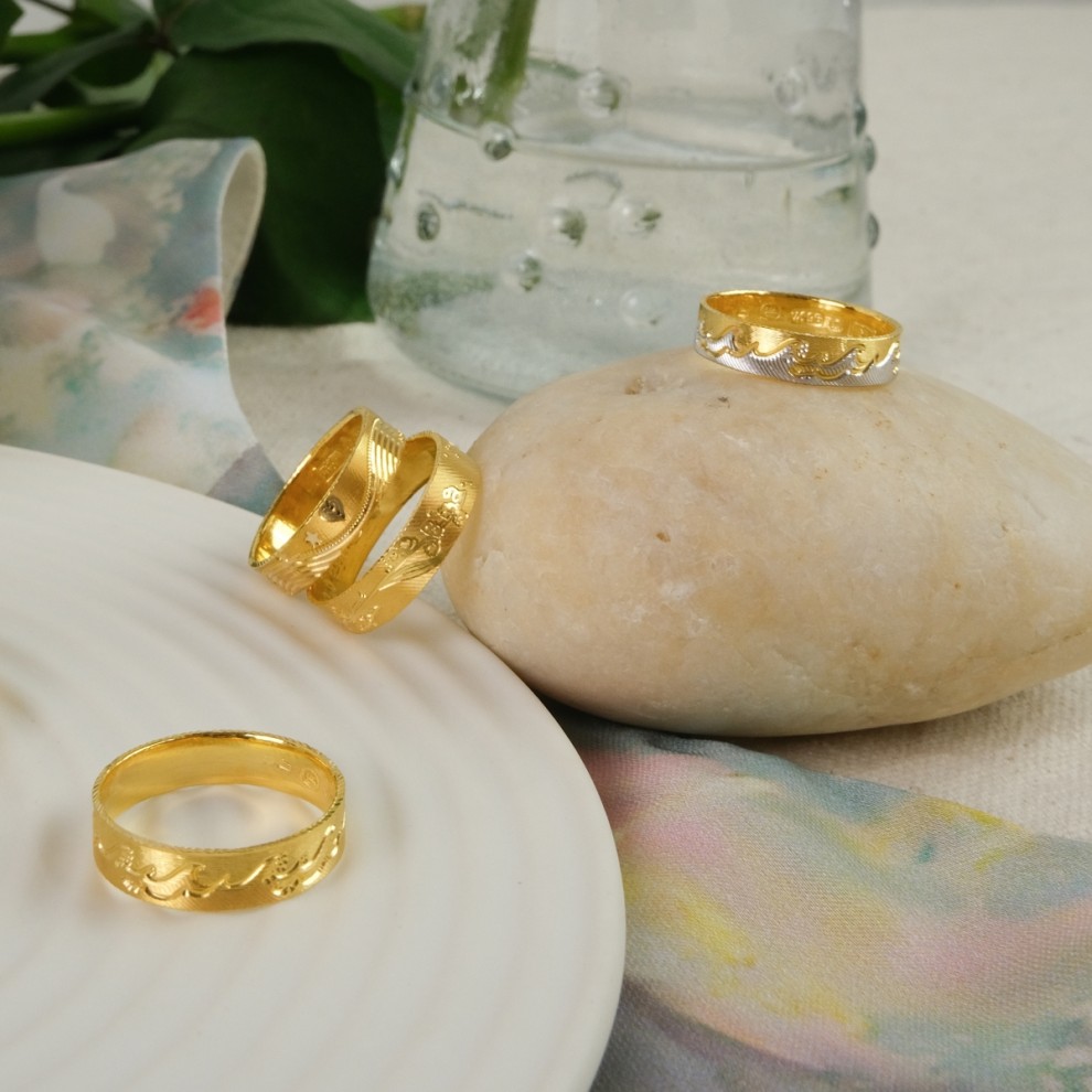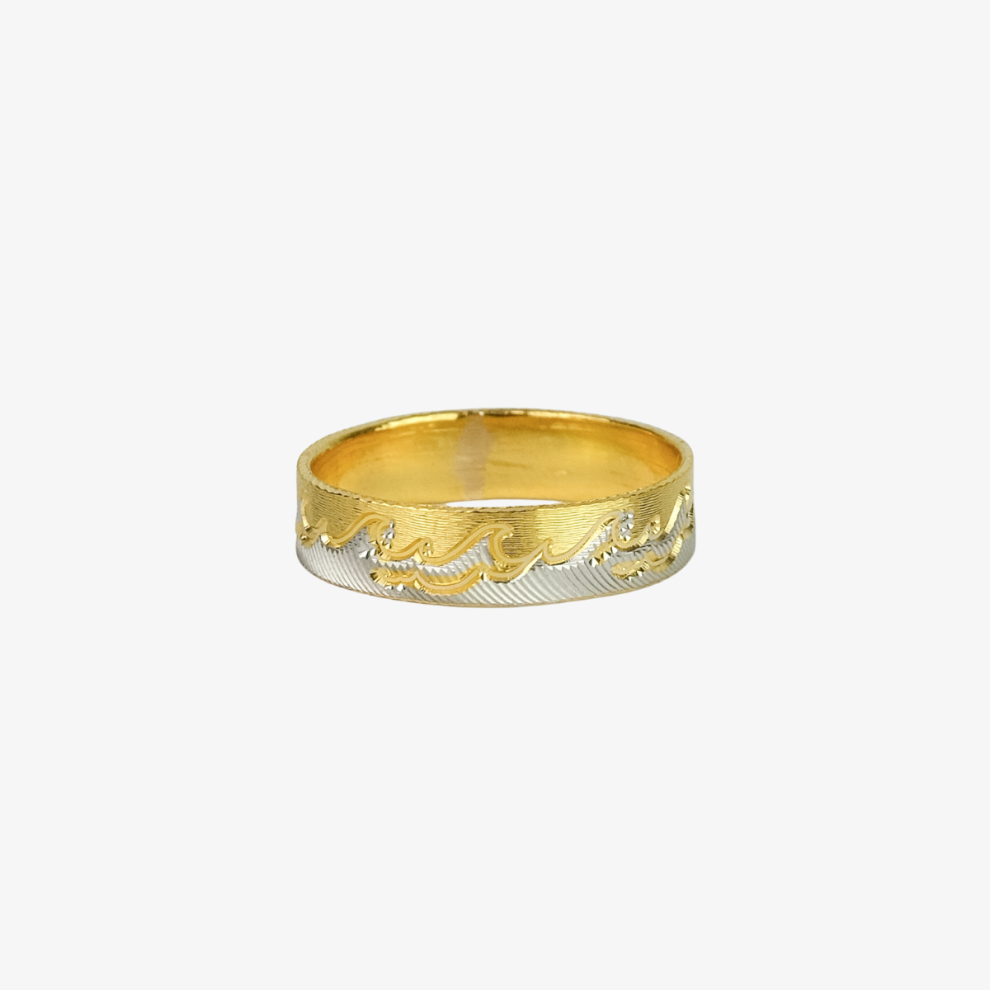 แหวนตัดคอมน้ำหนัก 1 สลึง หน้าแบนตัดลายคลื่นทะ 2 สี หน้ากว้าง 5 mm.