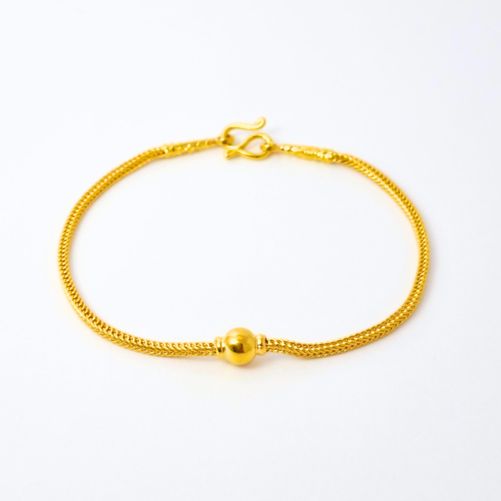 สร้อยข้อมือ น้ำหนักครึ่งสลึง ลายเบ้นซ์คั่นเม็ดกลม