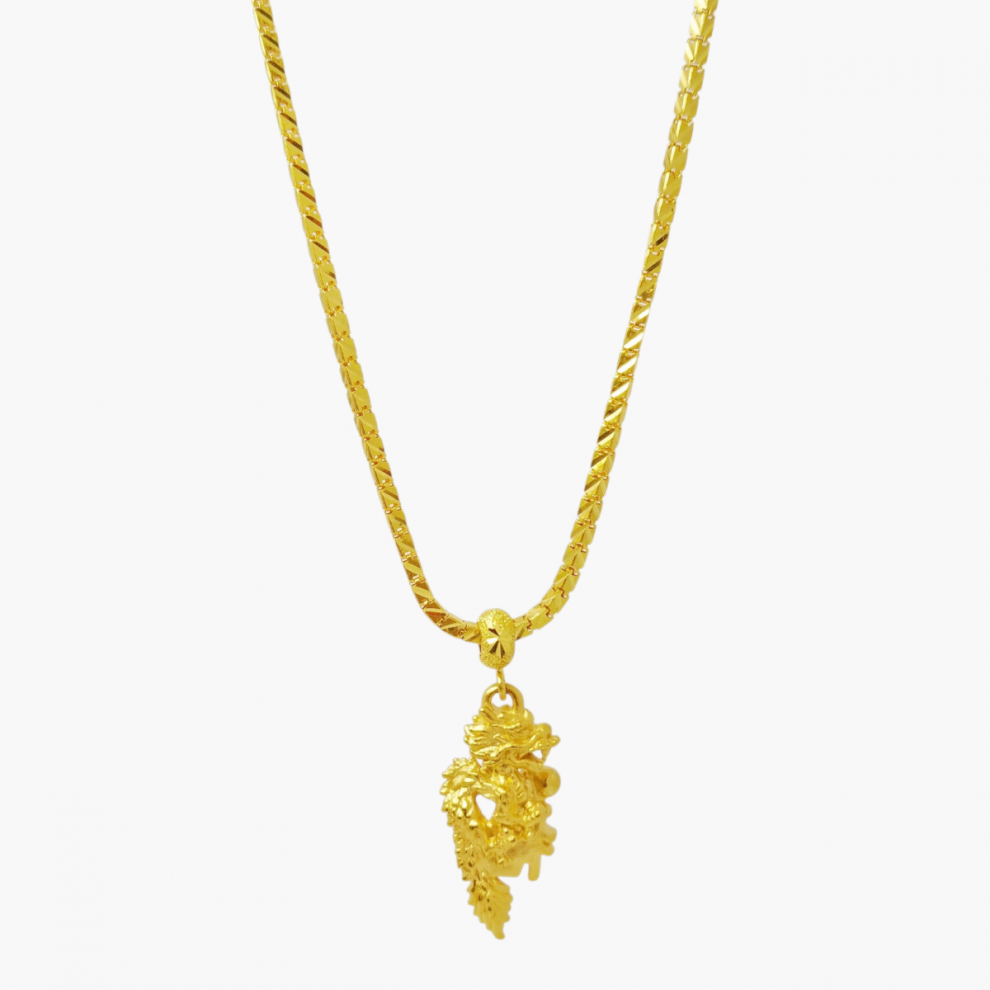 สร้อยคอน้ำหนัก 2 สลึง ลายโซ่กล่องห้อยจี้มังกร